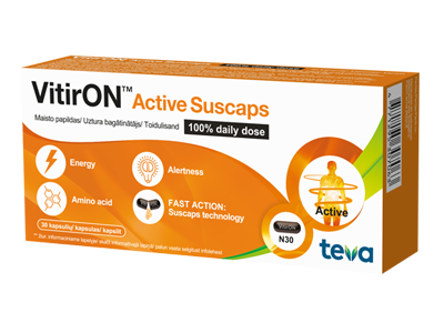 *VitirON™ Active Suscaps 100 % daily dose sudėtyje yra 100 % rekomenduojamos vitaminų ir mineralinių medžiagų paros normos (100 % referencinės maistinės vertės).